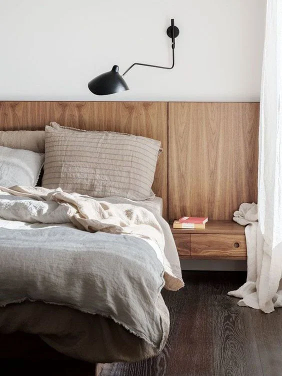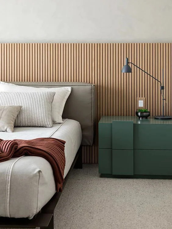 Добавьте архитектурных деталей за счёт обшивки панелями, вагонкой или молдингами. За основу можно взять как одну стену, так и часть стены, использовать как на однотонные выкрашенные стены, так и дополняя стены с обоями. Эти детали добавят объема и текстуры пространству. Например, дерево в чистом виде, создаст природную атмосферу в спальне, а выкрашенные его элементы добавят локального цвета в интерьер. Такой элемент отделки может показаться немного грубым и твердым, поэтому смягчите интерьер тактильно приятными предметами - ковром, мягкой обивкой мебели, подушками и пледами.