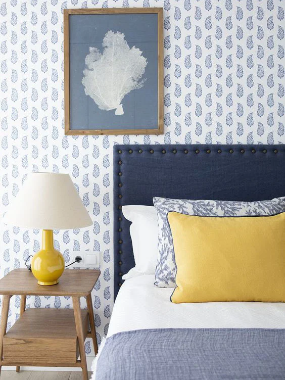 Отличный вариант быстрого ремонта и обновления пространства. Акцентная стена позволяет эффектно обновить спальное место, при этом затрагивая только часть одной стены. Выбирайте яркие принты, узоры или текстуры, но ориентируйтесь на размер вашей комнаты. Маленькие детали на рисунке могут потеряться на длинной и большой стене, а крупный рисунок в маленьком пространстве будет визуально давить и выбиваться из всей композиции комнаты.