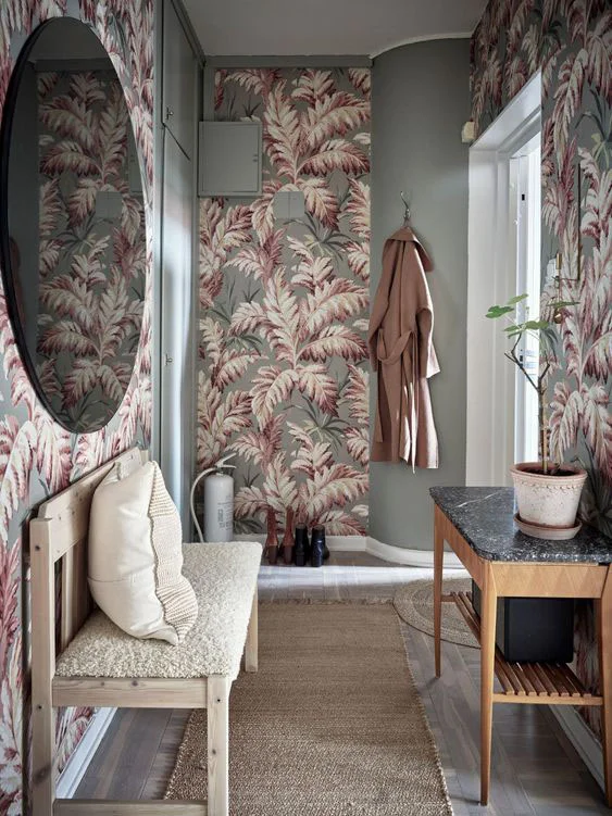 Обои на стенах - это всегда и везде отличная идея. Пусть это будет одна акцентная стена или верхняя часть стены в сочетании с вагонкой. Если наполняете пространство яркими акцентами и принтами с помощью обоев, то выбирайте мебель и ковровые покрытия более нейтральными, для ощущения гармонии и целостности помещения.