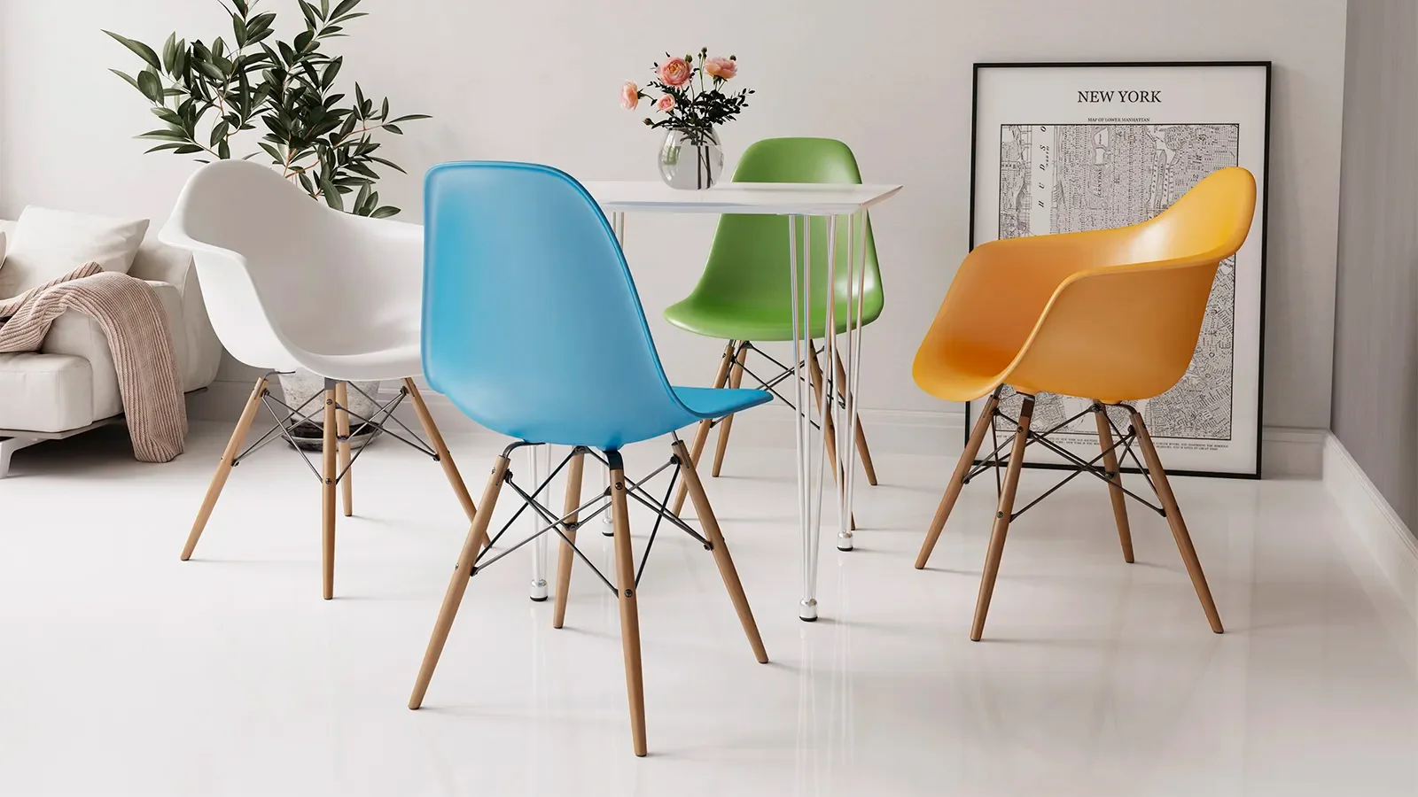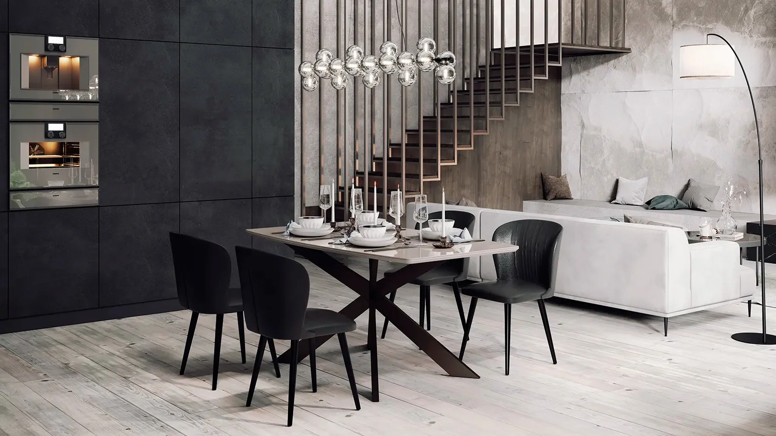 Прежде чем выбирать конкретный материал для мебели в столовую, вам нужно подумать о своем образе жизни. Стекло, как правило, имеет более острые края и само по себе хрупкое, что делает его непригодным для домов с маленькими детьми. Да и вообще стоит признать, что стекло и натуральный мрамор слишком холодные для столешниц. Если в вашем доме обычно прохладно, лучше выбирать МДФ, ДСП или натуральное дерево. Дети обязательно будут оставлять отпечатки пальцев на поверхности стекла, любого глянца и даже черного мата, что может потребовать более частого мытья. Мрамор и необработанное дерево — пористые материалы, которых вам следует избегать, если ваша обеденная зона используется постоянно. В итоге самой популярным вариантом с лучшим соотношением цены, качества и практичности будет мебель на металлическом каркасе, с мягкой обивкой сидений и шпонированной столешницей. Но, конечно же, существует огромное множество других интересных вариантов.