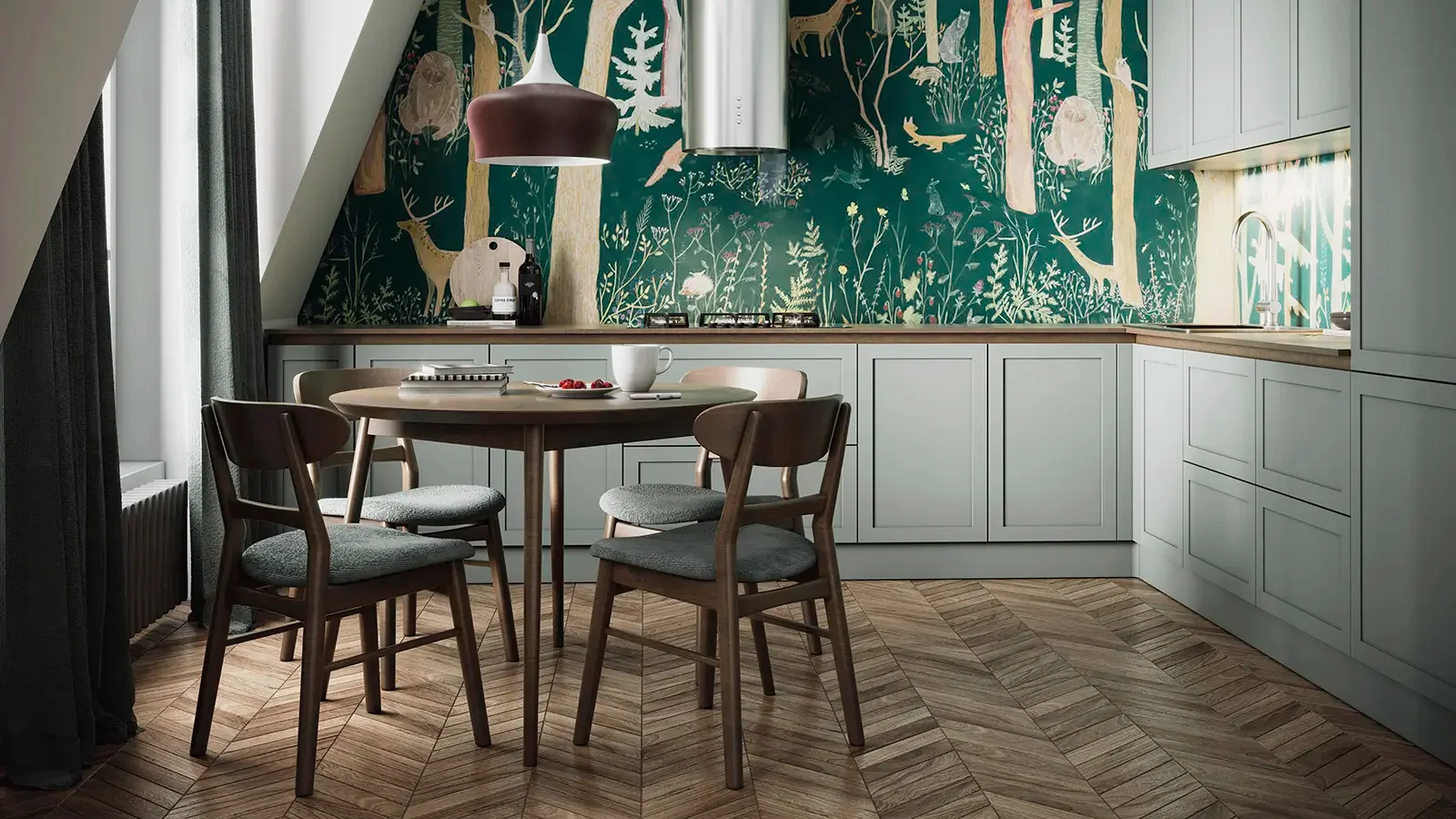 Теснота убьет комфорт и испортит настроение в любом месте дома. Помимо того, что нужно оставить место для стульев, убедитесь, что на самом столе достаточно пространства для приборов. Например, салфетницы, солонок-перечниц, вазы для цветов, может быть, тостера или чайника, если вам удобно расположить их здесь.