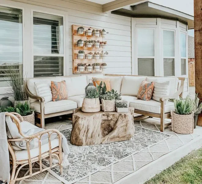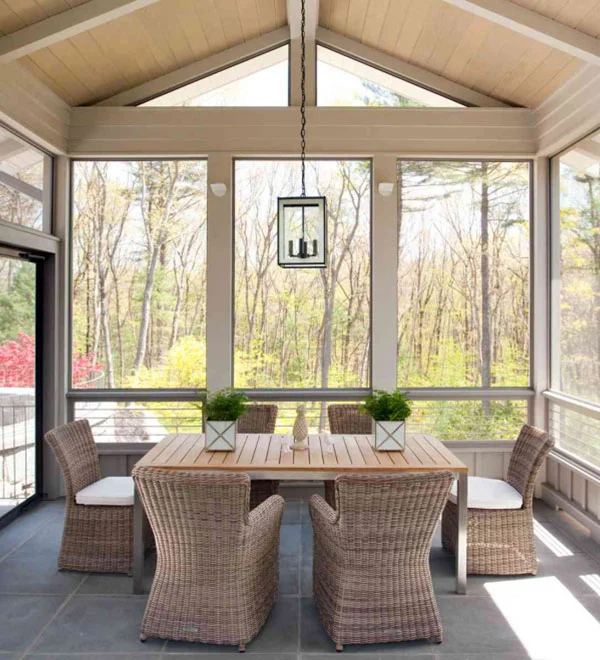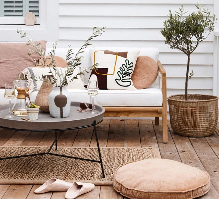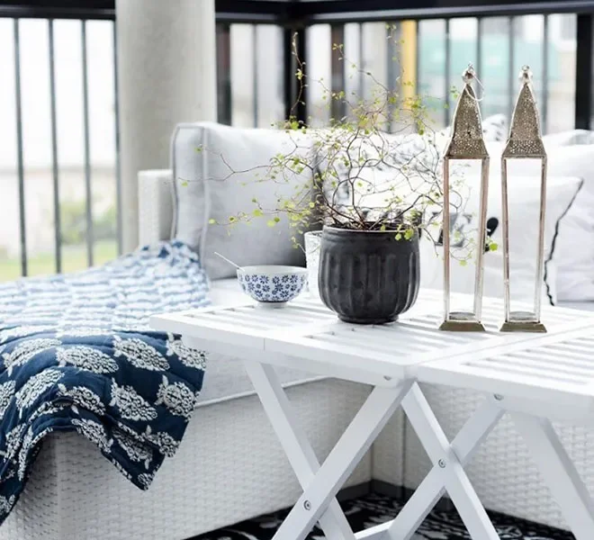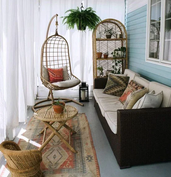 Чтобы получить безграничное удовольствие от отдыха на веранде, используйте приём «тактильности». Мягкие подушки, в которых так приятно утонуть после заката, ворсистые хлопковые пледы, спасающие от вечерней прохлады, покрывала и коврики добавят вашей веранде большей привлекательности и осязательности.