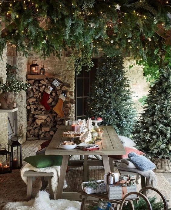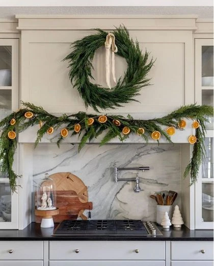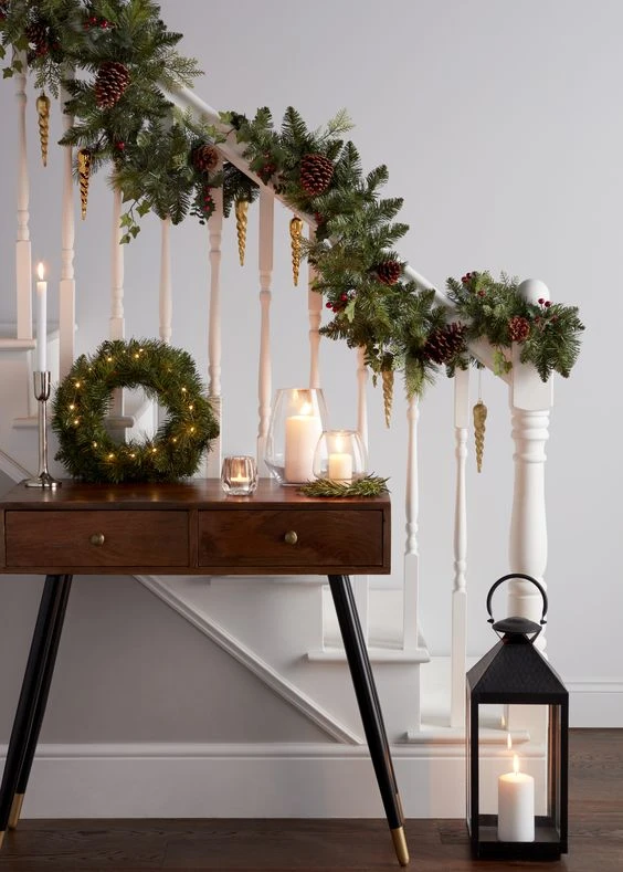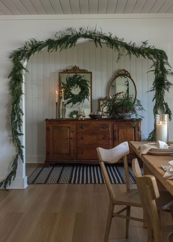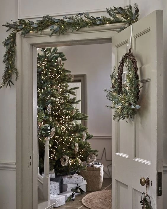 Хвойные гирлянды смотрятся волшебно, празднично и немного таинственно. Словно оказался в центре сюжета новогодней сказки. Если используете для гирлянд живые ветви, то предпочтительней брать сосну или пихту. Их иголочки осыпаются медленнее, чем еловые. Декорируйте пушистыми гирляндами двери, окна, ниши, балки, колонны, зеркала, лестничные перила, камины, стены, консоли и столы. Подчеркнут их благородство сияющие огоньки, палочки корицы, ленты, кружочки сушеных апельсинов, новогодние шарики и фигурки. Хвойная гирлянда может быть как дополнением главной ёлки, так и её альтернативой. Элегантно смотрятся минималистичные варианты с натуральным декором. Идеально, если на ветвях останутся свои шишки. Такими лесными гирляндами можно украсить дом снаружи, и они будут радовать вас естественным очарованием всю зиму.