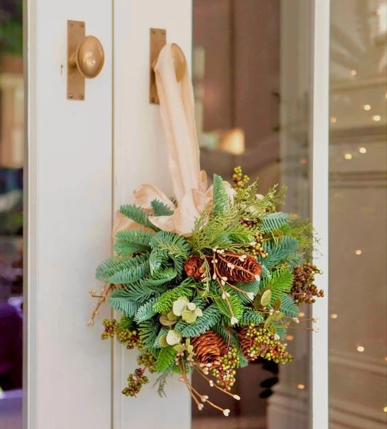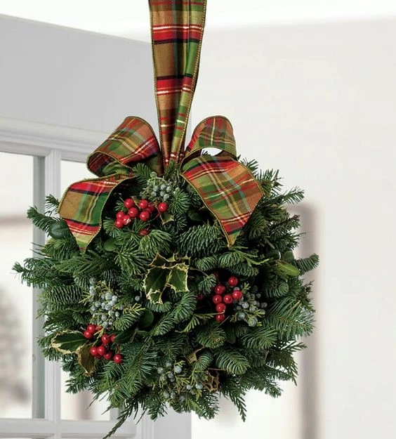 Хвойные шары (или рождественские шары для поцелуев) — забытые украшения из прошлого, которые стали обретать популярность благодаря социальным сетям. Ассоциируются они с любовью, добрыми вестями. Считается, что тот, кто пройдет под хвойным шаром, получит благословение. А если влюбленные поцелуются под ним, то они станут неразлучными. В любом случае, хвойный шар — ещё одна возможность наполнить дом чем-то оригинальным и праздничным. В основе — флористическая сфера или шар из пенопласта. Наполнение — какое угодно: любые виды хвойных, цветы, колокольчики, игрушки, ленты, банты.