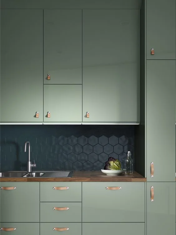 Но можно увеличить их высоту, сделать их под потолок. Таким образом, в них поместится больше посуды и вещей, и вам не нужно будет делать длинный или угловой нижний уровень. Если вам хватит места на навесных шкафах, то освободившуюся площадь можно использовать под стол или размещения холодильника.
