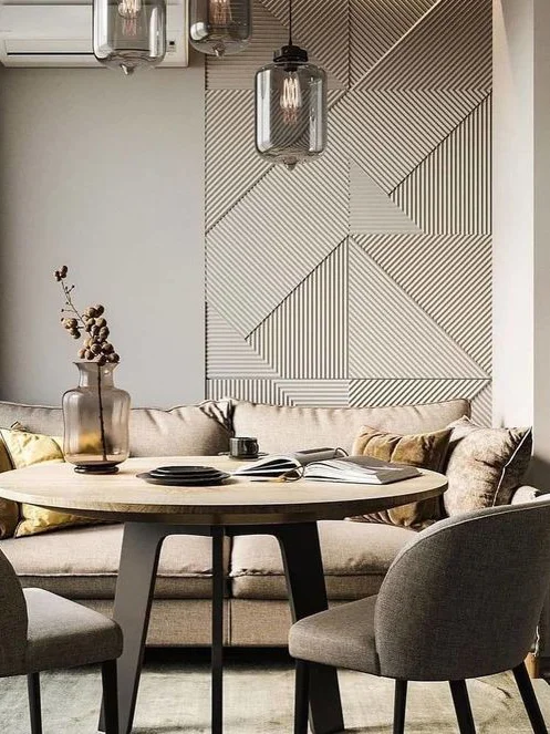 Серо-коричневый здесь составляет прекрасную основу. В сочетании с белыми деталями помещение приобретает элегантный вид, ощущение чистоты и простора. Добавив жёлтые или лимонные оттенки и текстуру дерева, проявляется жизнерадостная и живая атмосфера. Горчичный же оттенок в союзе с серо-коричневым совсем иначе раскроется в пространстве, создавая уютный и одновременно дерзкий интерьер. Если же хочется лаконичности и минимализма, то к серо-коричневому попробуйте добавить палитру бежевых и светло-серых оттенков. Они могут прослеживаться как в мебели, так и в декоративных элементах и текстиле. Такому интерьеру натуральные ткани в виде льна, добавят особое органичное состояние.
