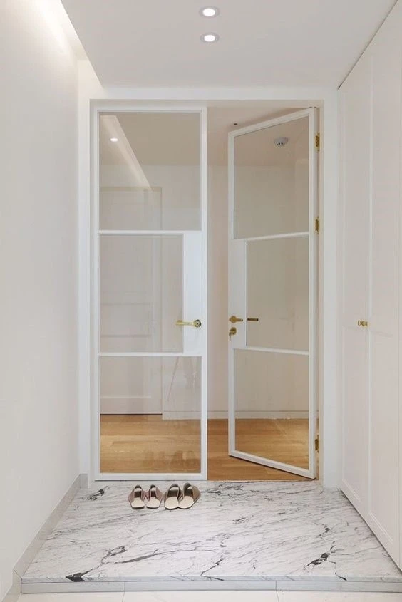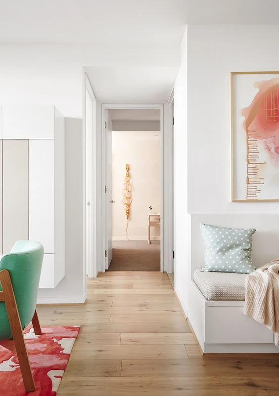 Грамотное расположение прихожей гарантирует чистоту и большую приватность. Изолировать пространство прихожей можно с помощью опять же лёгкого визуального зонирования, либо возведения дополнительных стен. Постарайтесь сделать прихожую не проходной и максимально обособленной.