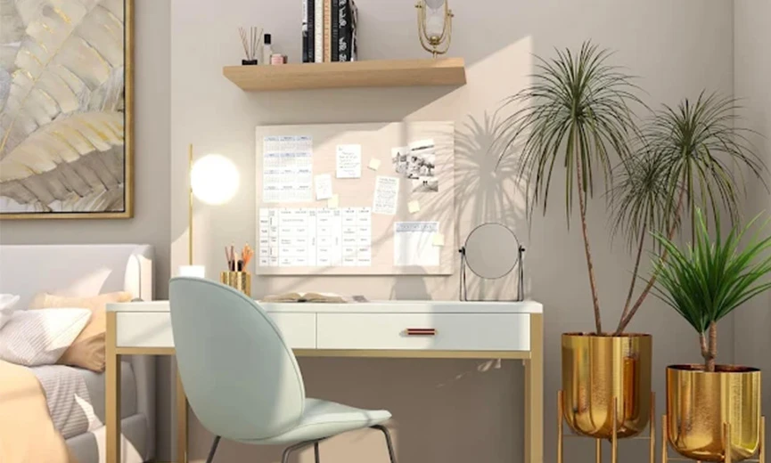- Многофункциональные предметы: кровать со встроенным рабочим местом, пуф с отделением для хранения.
