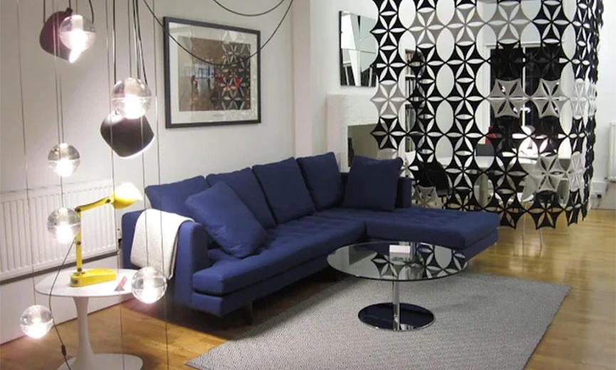 - Акцентные предметы: одно яркое кресло необычной формы или изогнутый диван могут стать центром композиции.