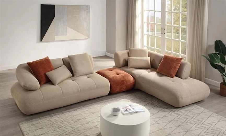 - Модульные диваны и стеллажи: конфигурации, которые можно менять в зависимости от ситуации.