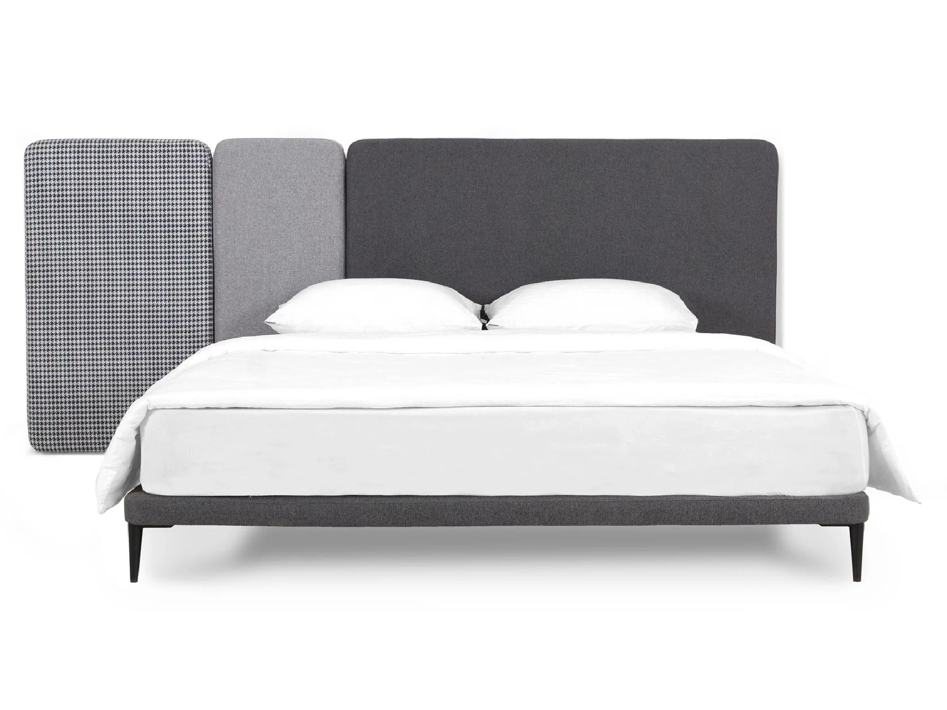 В спальне витает камерная атмосфера. Преобладает сдержанность в цветовых решениях, многофункциональность предметов, прозрачные конструкции, поддерживающие иллюзию большей площади. Для комфортного сна — кровать Licata с мягкими панелями, формирующими высокое удобное изголовье. Они делают территорию отдыха дружелюбнее, теплее, а также дарят чувство защищенности и умиротворения. Роль прикроватной тумбы выполняет столик Rachel из металла. Его месторасположение можно менять по желанию. Рабочая зона состоит из стола-панели, совмещенного со стеллажом, и эргономичного кресла Ilari.